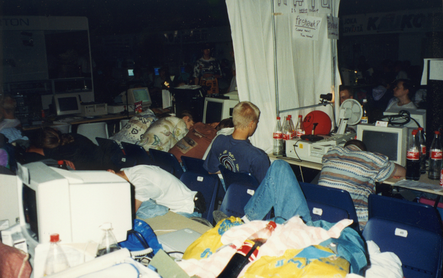 A big topic at parties is always sleeping. While the sceener normally does not want to sleep much, because he can miss some event the body insists on some hours of unconsciousness. Some people are perfectly prepared for this and provide their own bed and are able to sleep while the sun is shining and their friends are playing behind them.