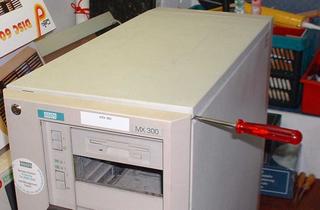 Front View. The QIC-02 tape has been removed, thus the empty 5.25" slot, because it was defect. I connect the replacement tape to the external scsi bus. |